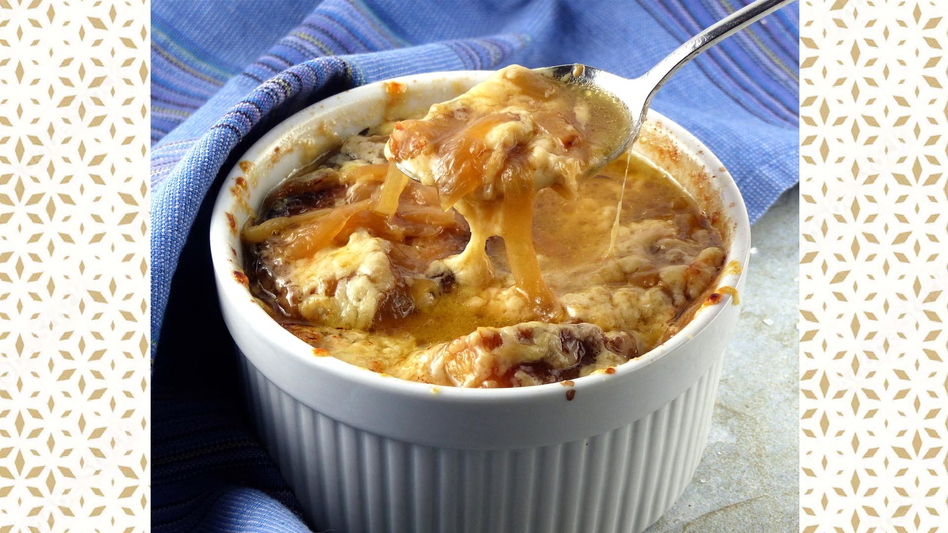 Read more >Melting Gruyère cheese atop a savory broth enriched with sweet caramelized onions.