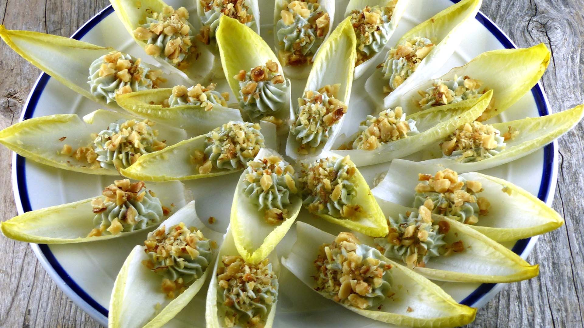 Read more >Cups of crisp endive leaves filled with tangy blue cheese and topped with toasted walnuts!