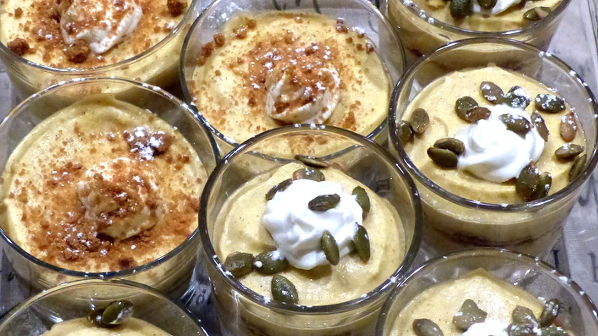 Read more >A velvety spiced pumpkin mousse layered with gingersnap crumbs.
