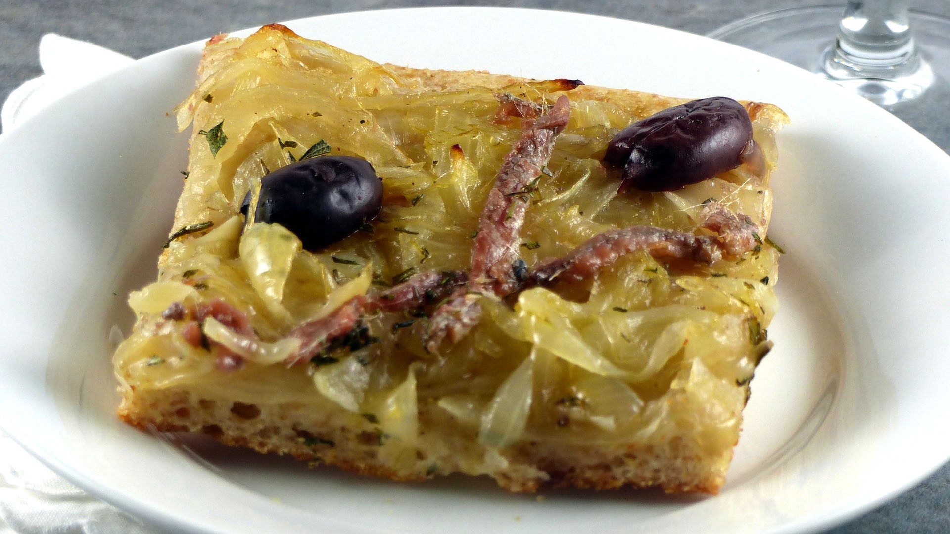 Read more >It's like a pizza, but the crust is crowned with wilted onions, anchovies, black olives, and Mediterranean herbs—a magical combination.