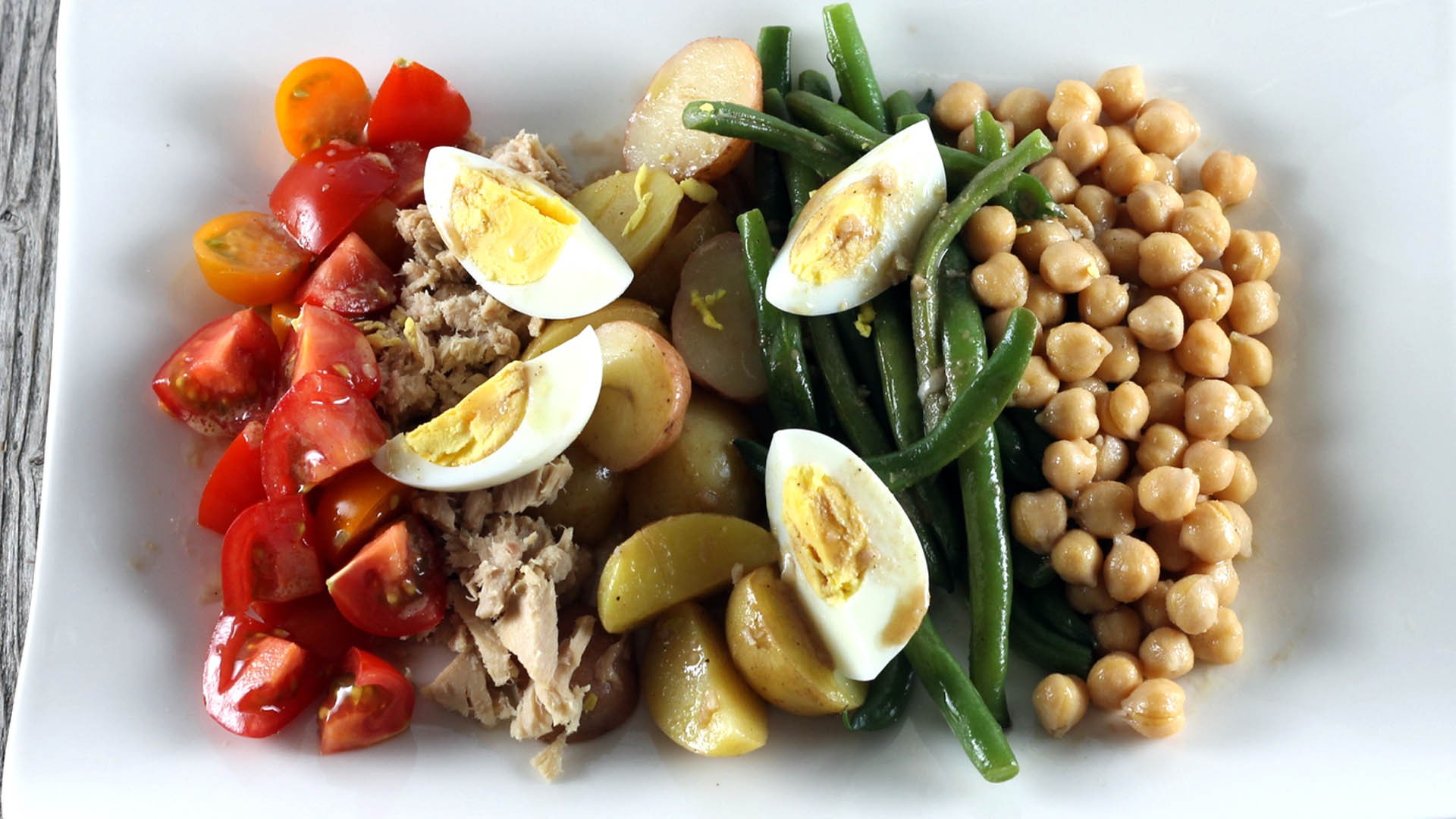 Read more >This main-dish summer salad features green beans, potatoes, canned tuna, and hard-boiled eggs.