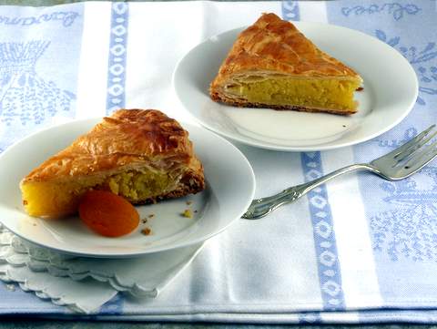 favored in the south of France, while a pastry made with almond cream, sandwiched between two sheets of puff pastry, is preferred in the