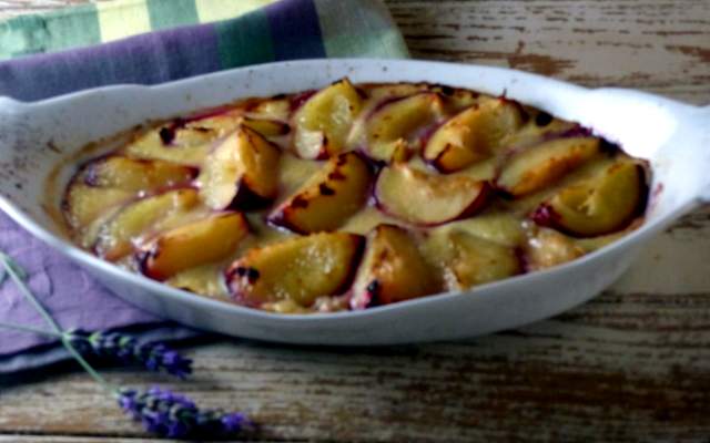 desserts like this plum gratin. You may associate the word “gratin” with cheesy vegetable dishes, but gratins are also a delicious option