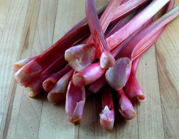 Like asparagus, rhubarb announces the beginning of the growing season—and I celebrate it. Although the plant is technically a vegetable, it is typically treated as a fruit and used in sweet preparations. On their own, rhubarb stalks are quite sour, and rhubarb recipes usually include a fair amount of sweetener.